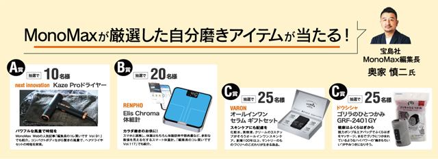 グンゼ株式会社(本社:大阪市北区、社長:佐口 敏康)が展開するブランド「BODY WILD(ボディワイルド)」は、宝島社「MonoMax」編集部監修のもと、「BODY WILD」全商品を対象に、購入金額に応じて当選確率がUPするキャンペーン『BODY WILDでカッコよくなれ』を、2025年10月9日(木)~12月31日(水)の期間、実施いたします。価格以上に価値あるモノを厳選して紹介する「MonoMax」奥家編集長"お墨付き"の自分磨きに繋がるアイテムが抽選で合計80名様に当たります。「BODY WILD」の新しいアイテムに加え、自分をアップデートする特別な賞品を体験できるチャンスを、お見逃しなく。店頭・オンラインストアどちらでもご応募いただけます。