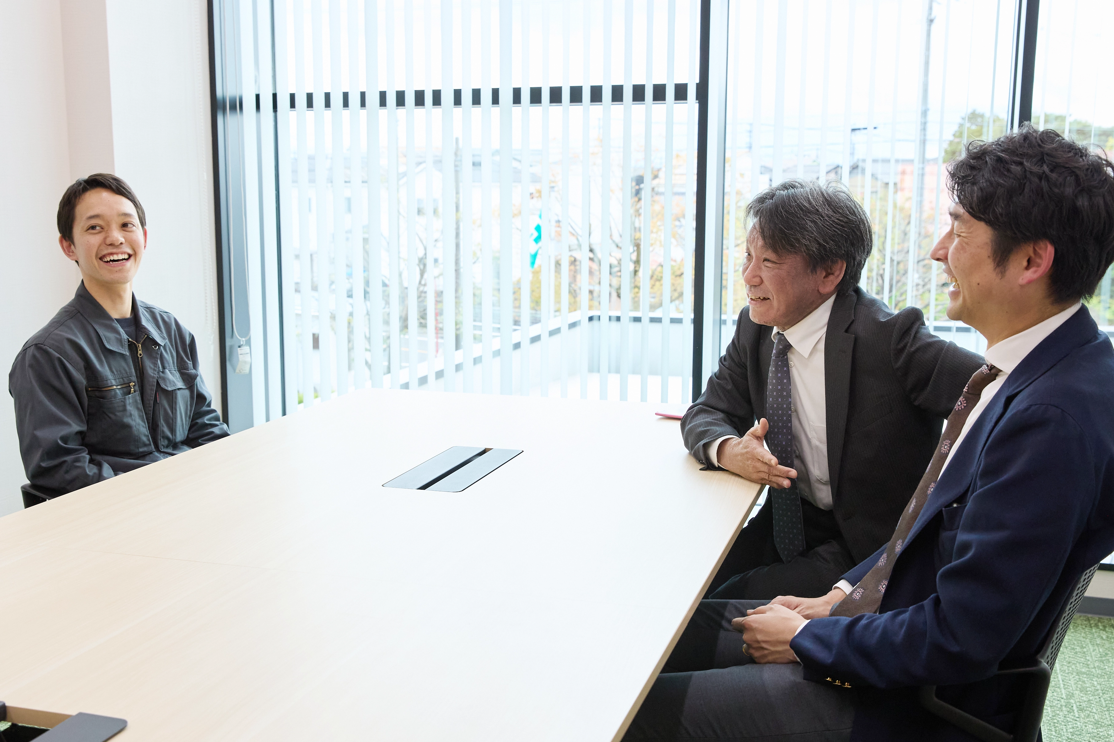 写真左から、マスダ(営業課)、ウチヤマ(商品開発課)、キクチ(営業課)