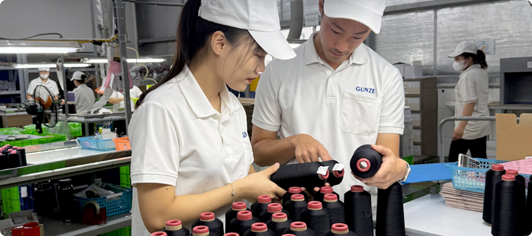 中国、インドネシア、ベトナム、バングラデシュの各拠点でグローバルに事業を展開するグンゼの繊維資材事業部。今回は、ベトナムに駐在する2人の若手社員に話をお聞きしました。アパレル縫製産業の最前線であるベトナムの地で、2人は常に世界市場に目を向けています。