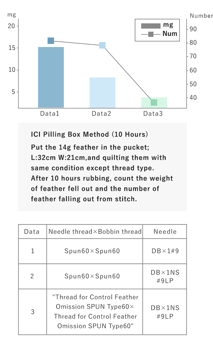 Gunze's thread for control feather omission improves falling out of feather by original processing.