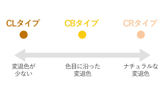 - ※タイプによってブリーチによる変退色の色落ち具合を調節しております。
