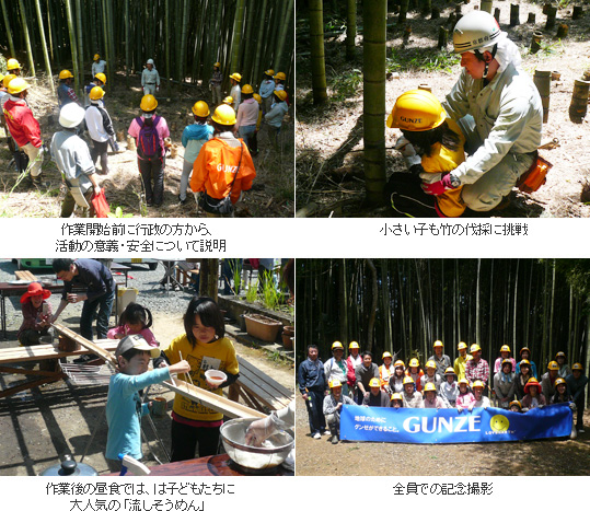 5月17日(土)、晴天にも恵まれ『第16回京都モデルフォレスト運動 in 綾部』を実施しました。従業員とその家族 30名が参加し、前回に引き続き、綾部市鍛治屋地区にある普門院の竹林整備を行い、春に成長する竹を効果的に伐採しました。今回は最初に行政の方から、活動の意義や安全面について、時間をかけてご説明頂きました。おかげさまで全員怪我もなく無事作業も終了し、前回同様多くの竹を伐採する事が出来ました。作業後、切り倒した竹から各自「竹のコップ」を切り出し、昼食時はそのコップをだし入れにしての流しそうめんで、楽しく美味しくいただきました。今後も地元の皆様と連携を取り、意義のあるボランティア活動として継続していきたいと思います。